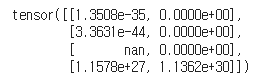 - C에서 초기화 하지 않은 변수처럼 다양한 값(NaN 포함)으로 구성됨 (환경에 따라 다른 듯)