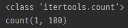 | count | start=0, step=1 | - start부터 step 만큼 더하면서 요소를 반복 - float도 가능하지만 지양 |