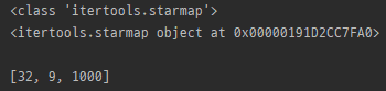 - iterable에서 얻은 인자를 사용하여 함수를 계산