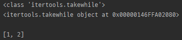 print(type(itertools.takewhile(lambda x : x < 3, myList)))