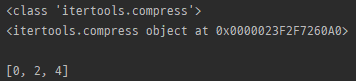 print(type(itertools.filterfalse(lambda x: x % 2, myList)))