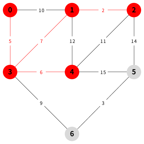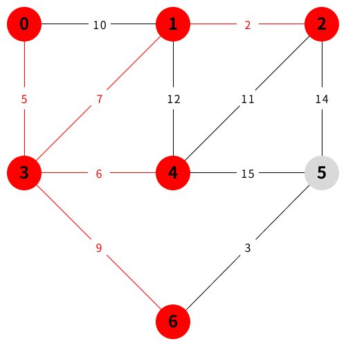 - 모든 노드가 Tree에 포함될 때까지 2-3을 반복