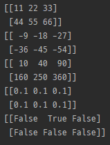 - 사칙연산 및 비교는 은 배열의 값끼리.
