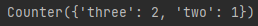 #result = {'one': 1, 'two': 2, 'three': 3} - Counter({'one': 1, 'two': 1, 'three': 1})